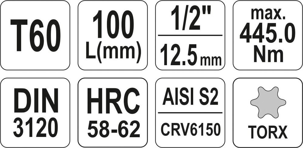 KLUCZ TRZPIENIOWY TORX 1/2 T60 L100MM