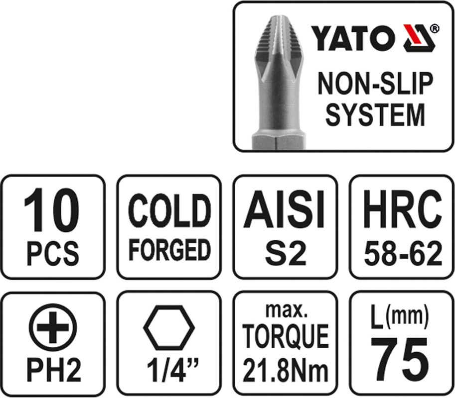 KOŃCÓWKI WKRĘTAKOWE PH2X75 MM, KPL. 10 SZT.