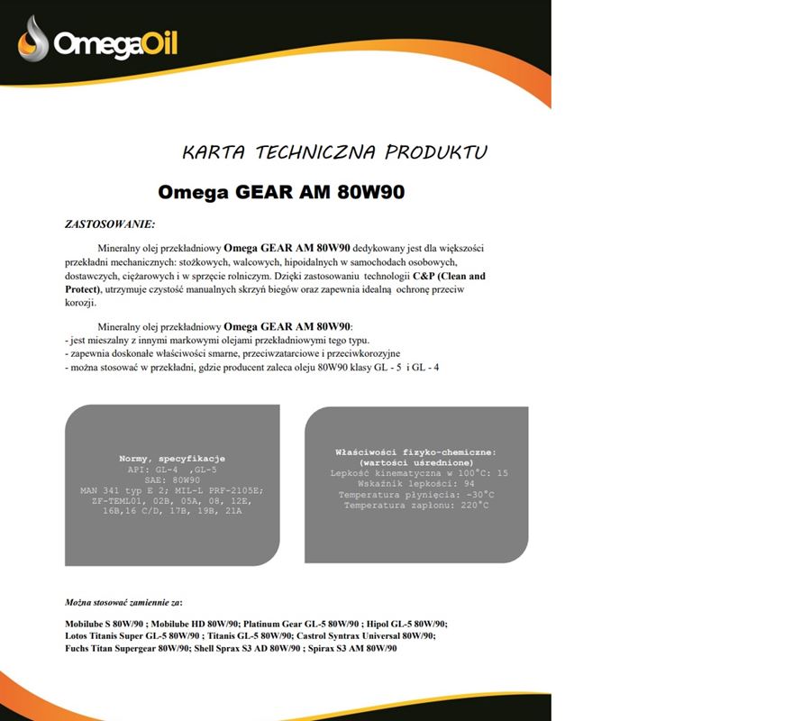OLEJ OMEGA 80W-90 5L GEAR AM