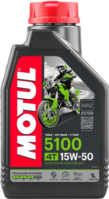 OLEJ SILNIKOWY 4T MOTUL 5100 15W50 1L, API SM JASO MA-2 PÓŁSYNTETYCZNY WZBOGACONY ESTRAMI