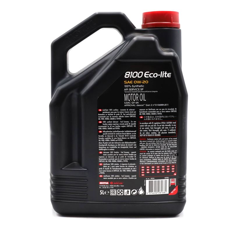 8100 ECO-LITE 0W20 5L OLEJ SILNIKOWY 8100 (5L) 0W20 ,API RC, SP, CHRYSLER MS-6395, DEXOS1 GEN2, DEXOS1 GEN3, FIAT 9.55535 CR1, FORD M2C947 A, FORD M2C947 B1, FORD M2C962 A1, HONDA, HYUNDAI, KIA, LEXUS, MAZDA, MITSUBISHI,