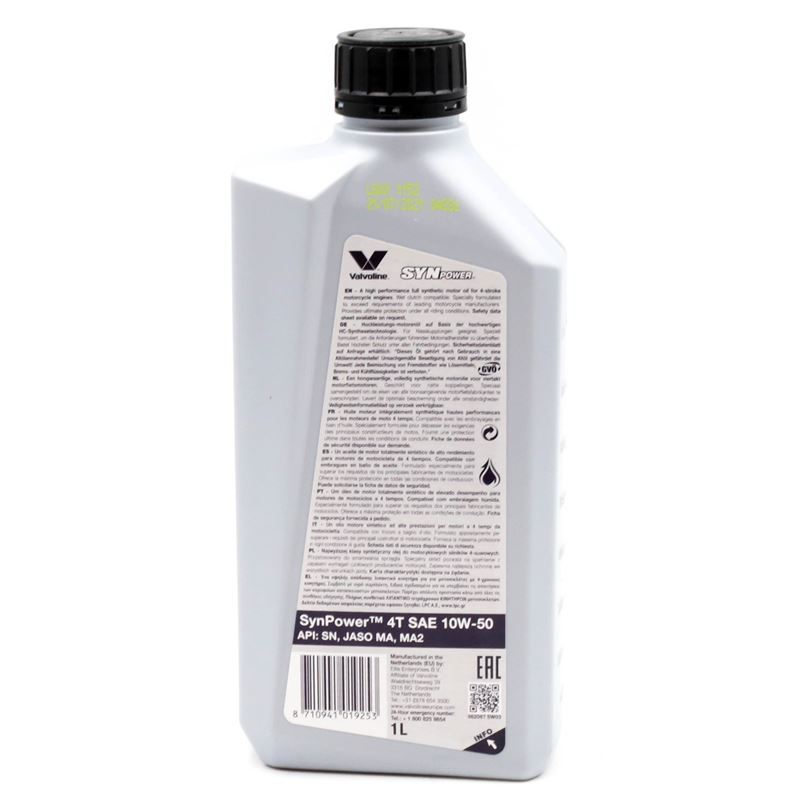 OLEJ SILNIKOWY 4T VALVOLINE SYNPOWER 10W50 1L, API SN JASO MA-2 SYNTETYCZNY